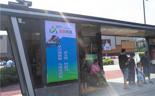 此次氛圍營(yíng)造活動(dòng),城投公司在管轄范圍內(nèi)的20處公交車(chē)站臺(tái)制作了以“社會(huì)主義核心價(jià)值觀(guān)”“講文明樹(shù)新風(fēng)”為主要內(nèi)容的宣傳展板,并利用公交車(chē)站臺(tái)LED顯示屏滾動(dòng)播放相關(guān)標(biāo)語(yǔ)。