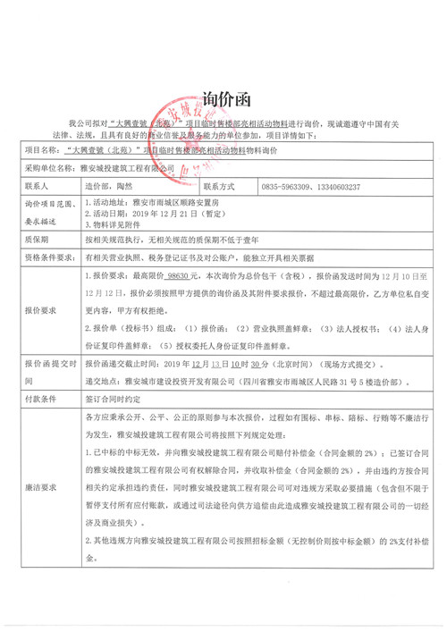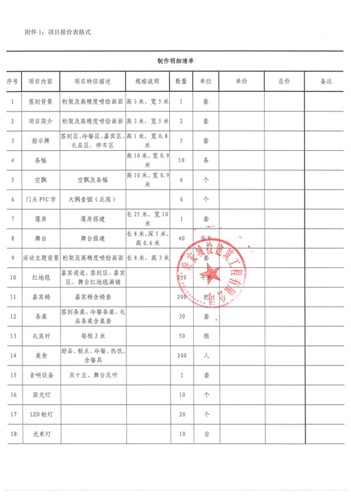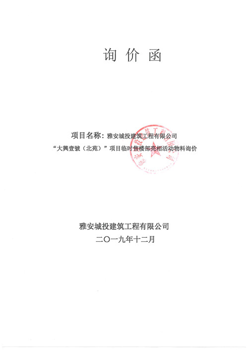 大興壹號(hào)(北苑)項(xiàng)目臨時(shí)售樓部亮相活動(dòng)物料詢(xún)價(jià)函