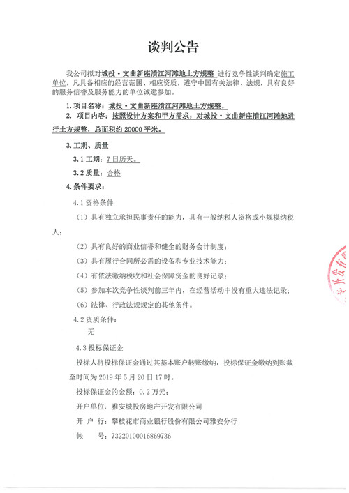 城投·文曲新座濆江河灘地土方規(guī)整競爭性談判公告