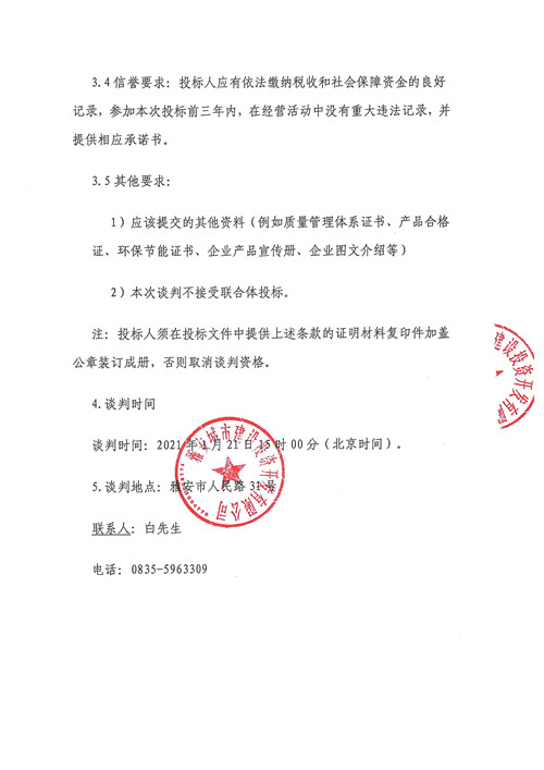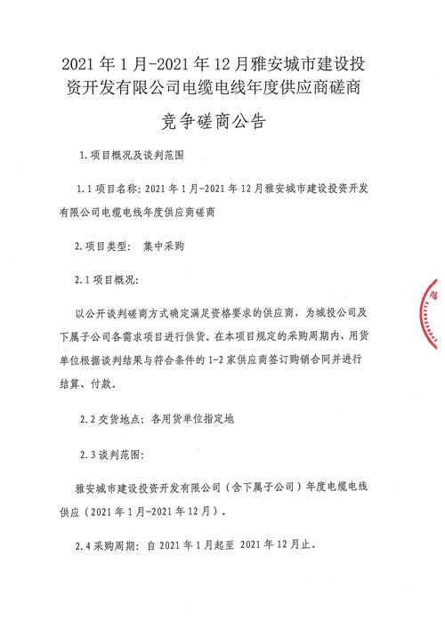 2021年1月-2021年12月雅安城市建設投資開發(fā)有限公司電纜電線年度供應商磋商競爭磋商公告