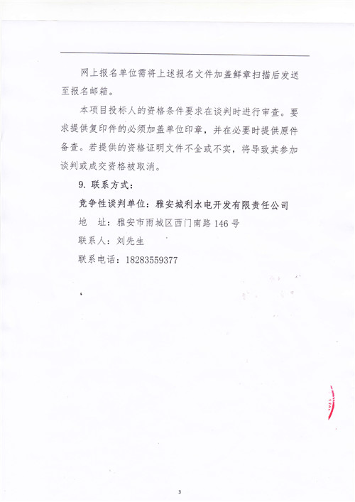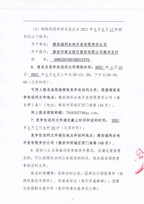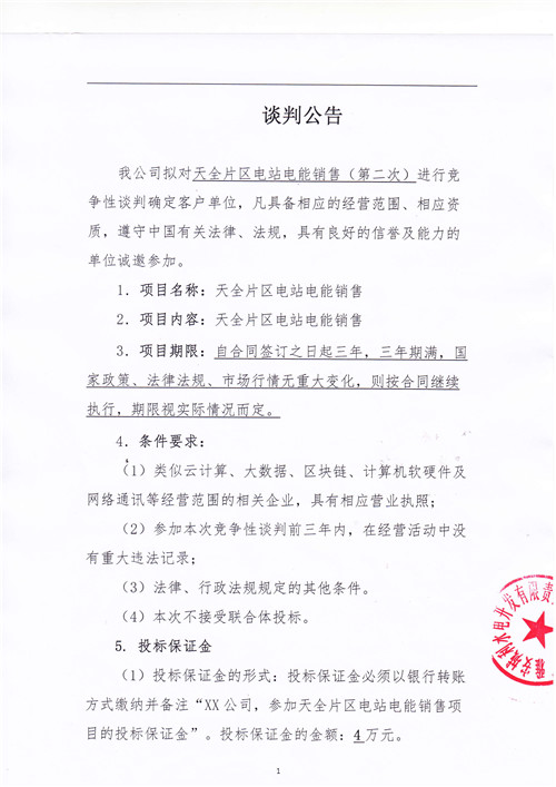 城利水電公司天全片區(qū)電站電能銷售(第二次)競(jìng)爭性談判