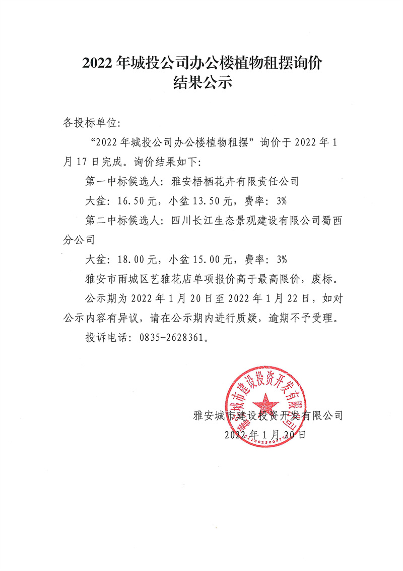 2022年城投公司辦公樓植物租擺詢價(jià)結(jié)果公示