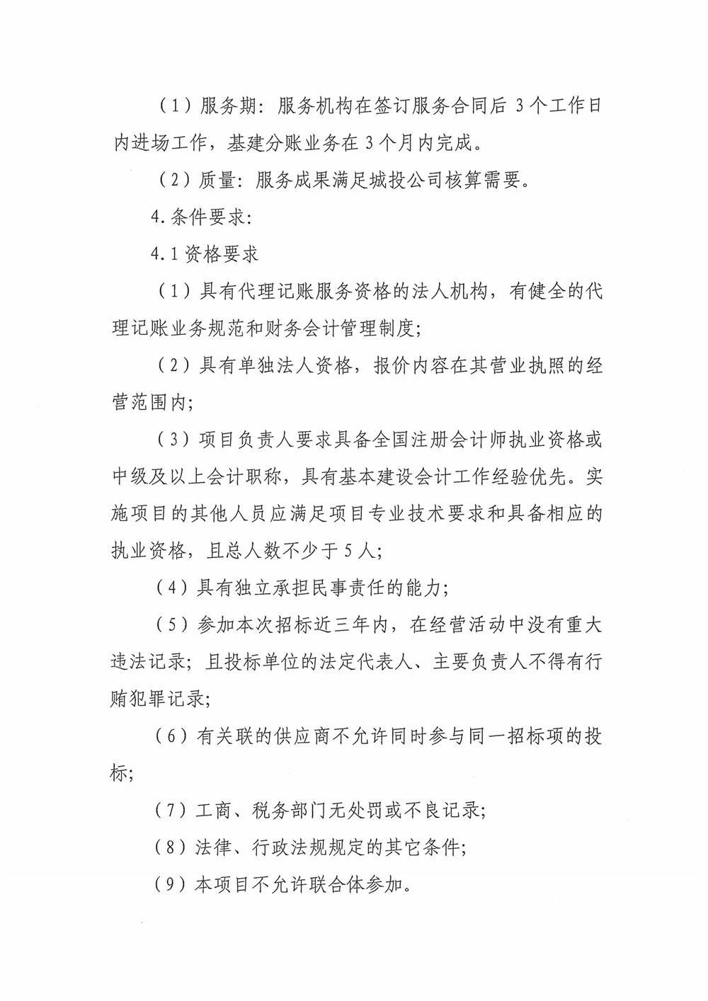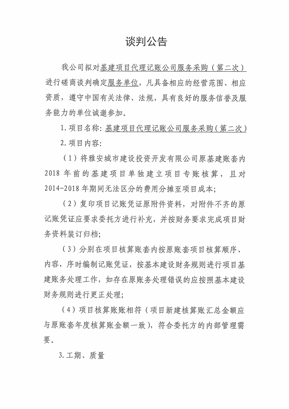 城投公司基建項(xiàng)目代理記賬公司服務(wù)采購(gòu)磋商談判公告(第二次)
