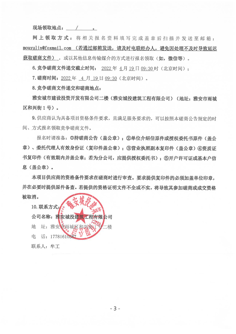 雅安金熊貓體育產業(yè)園(體育服裝標準化廠房)建設項目2#、6#廠房土石方工程磋商公告