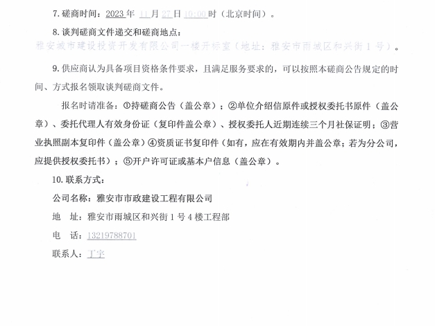 雅安文教新城體育產(chǎn)業(yè)制造園基礎(chǔ)設(shè)施及配套工程建設(shè)項目一標段入園道路工程項目水穩(wěn)攤鋪勞務(wù)分包磋商公告