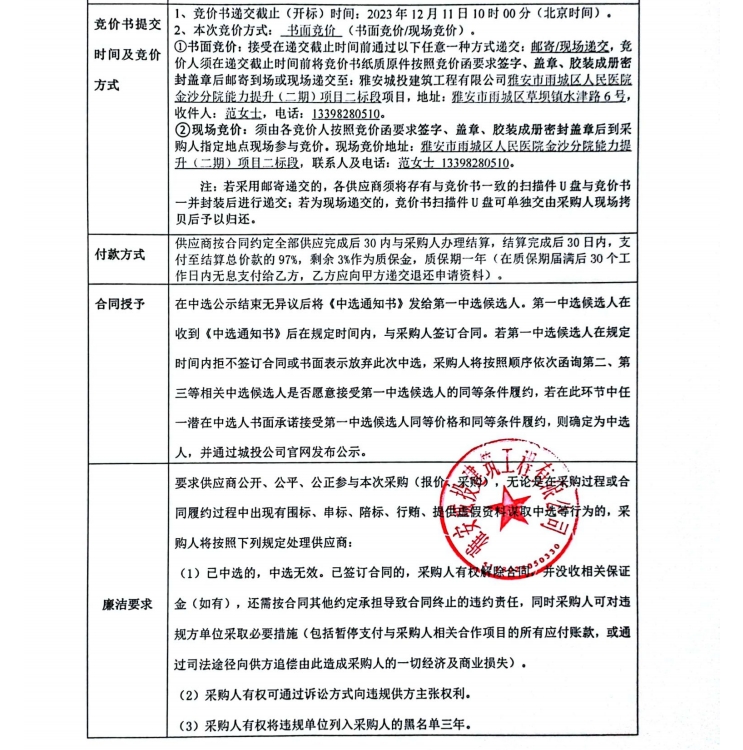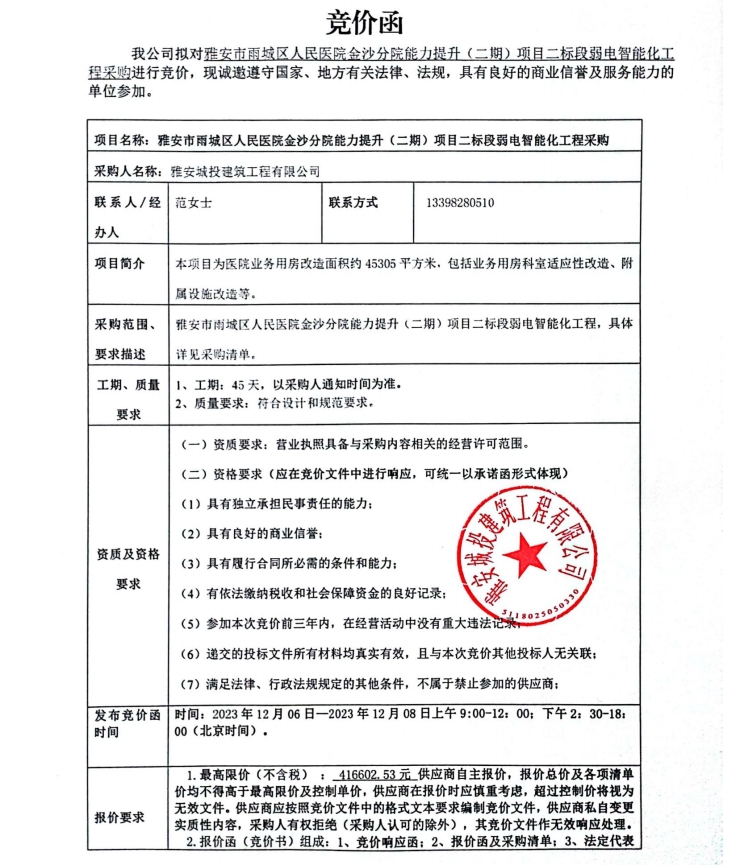 雅安市雨城區(qū)人民醫(yī)院金沙分院能力提升(二期)項目二標段弱電智能化工程采購競價公告