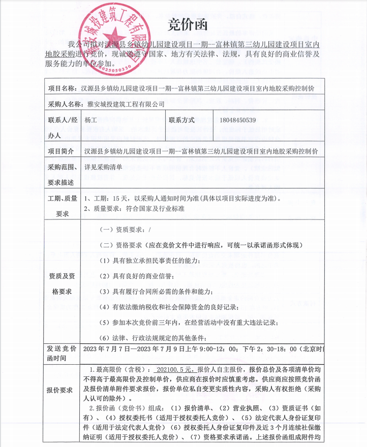 漢源縣鄉(xiāng)鎮(zhèn)幼兒園建設(shè)項(xiàng)目一期--富林鎮(zhèn)第三幼兒園建設(shè)項(xiàng)目室內(nèi)地膠采購(gòu)競(jìng)價(jià)公告