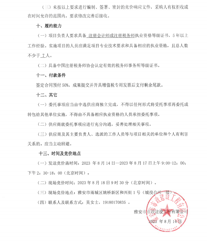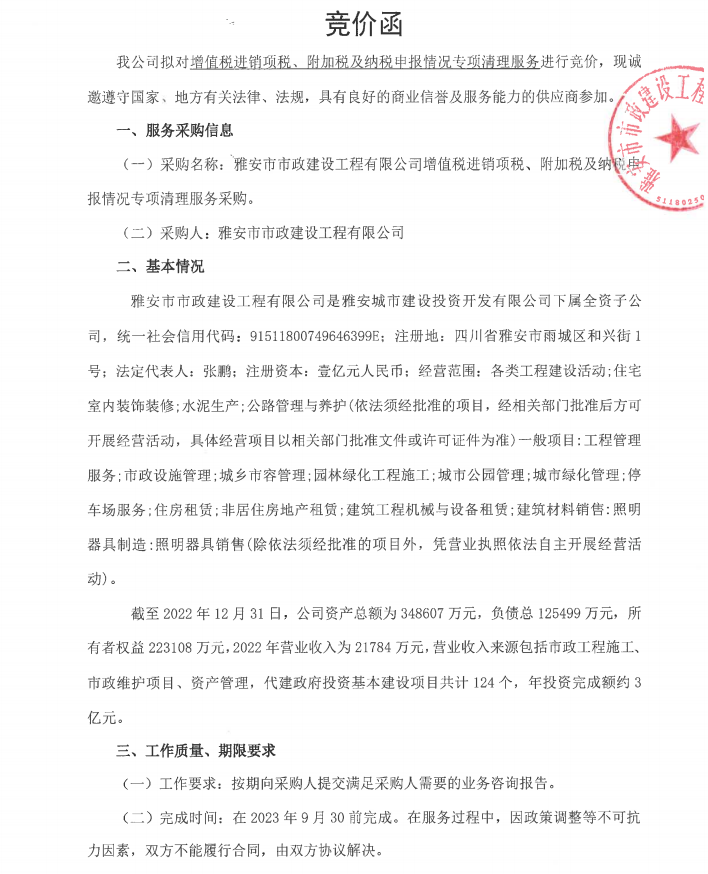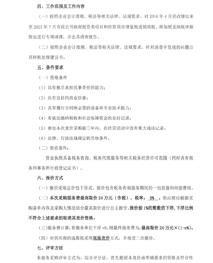 市政公司增值稅清理專項服務(wù)采購需求書