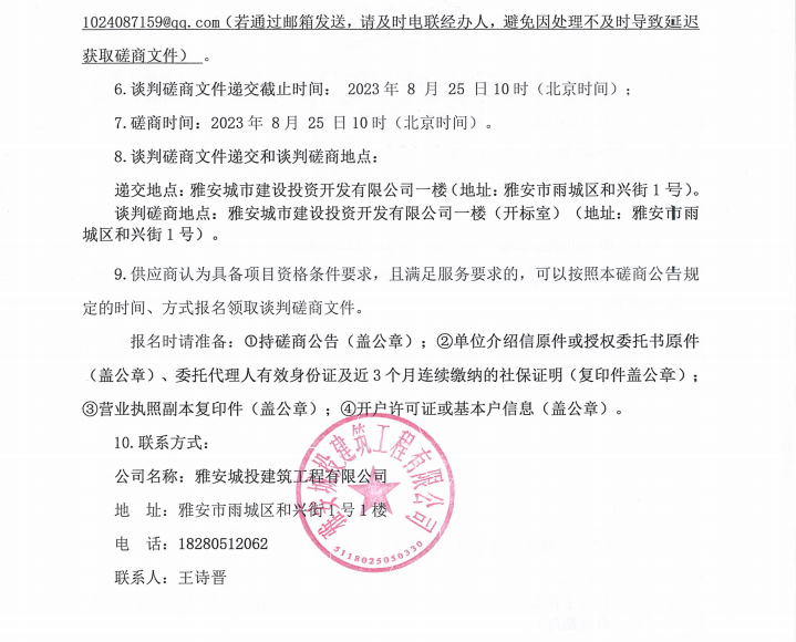 雅安市西康記憶生態(tài)文旅街區(qū)項目一號地塊項目弱電智能化系統(tǒng)(第二次)談判磋商公告