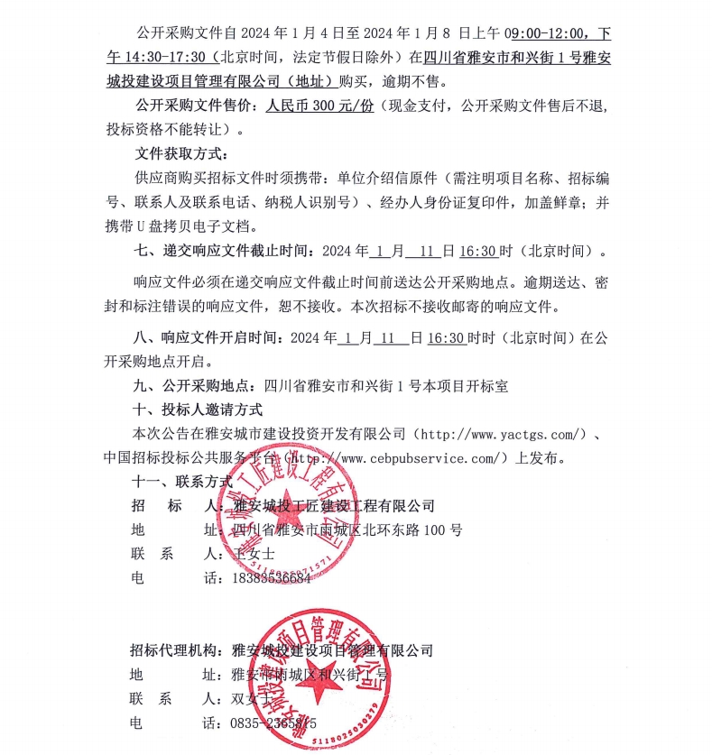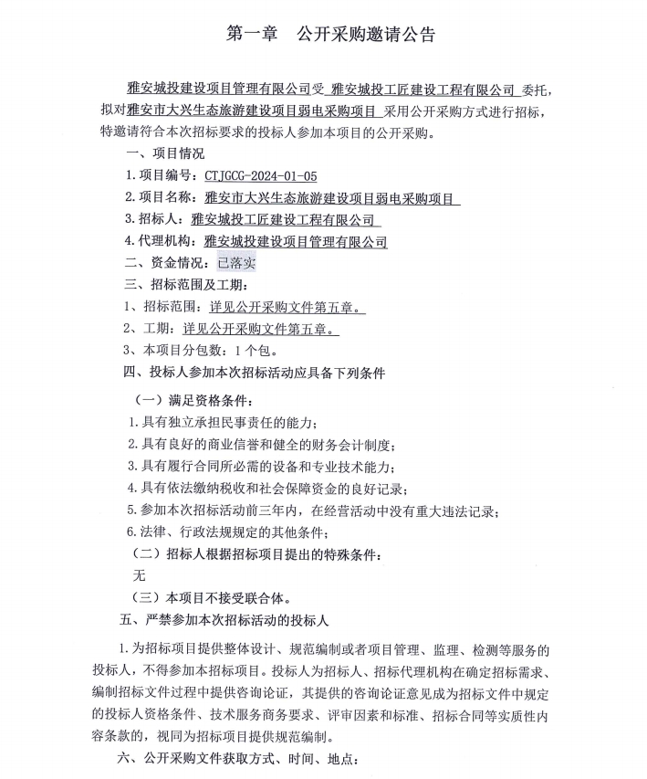 雅安市大興生態(tài)旅游建設(shè)項(xiàng)目弱電采購項(xiàng)目公開采購邀請(qǐng)公告