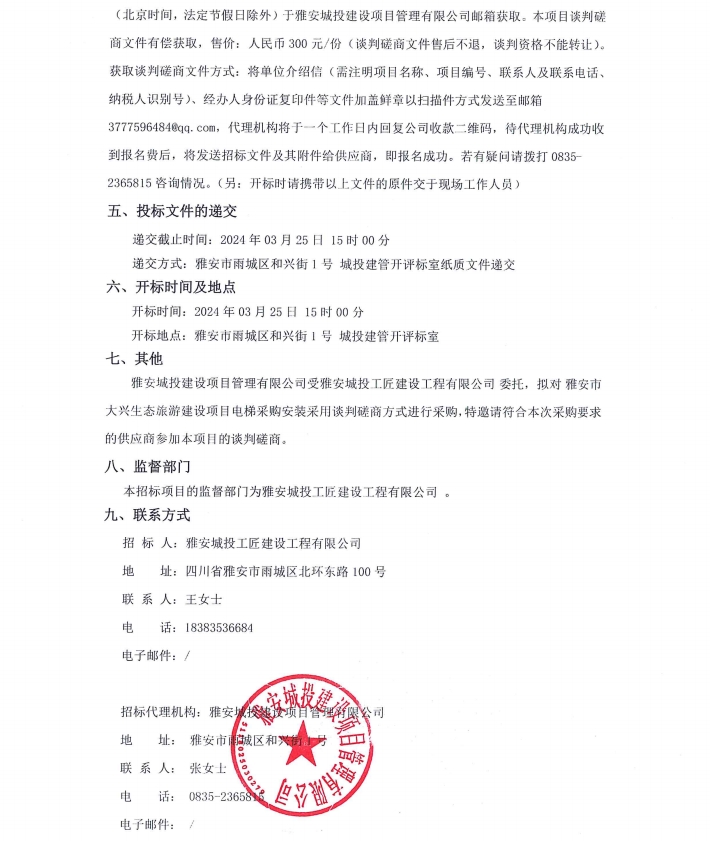 雅安市大興生態(tài)旅游建設(shè)項(xiàng)目電梯采購(gòu)安裝公告
