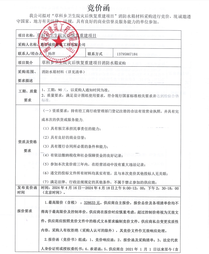 石棉縣草科鄉(xiāng)衛(wèi)生院災(zāi)后恢復(fù)重建項(xiàng)目消防水箱材料采購競(jìng)價(jià)公告