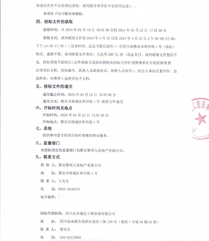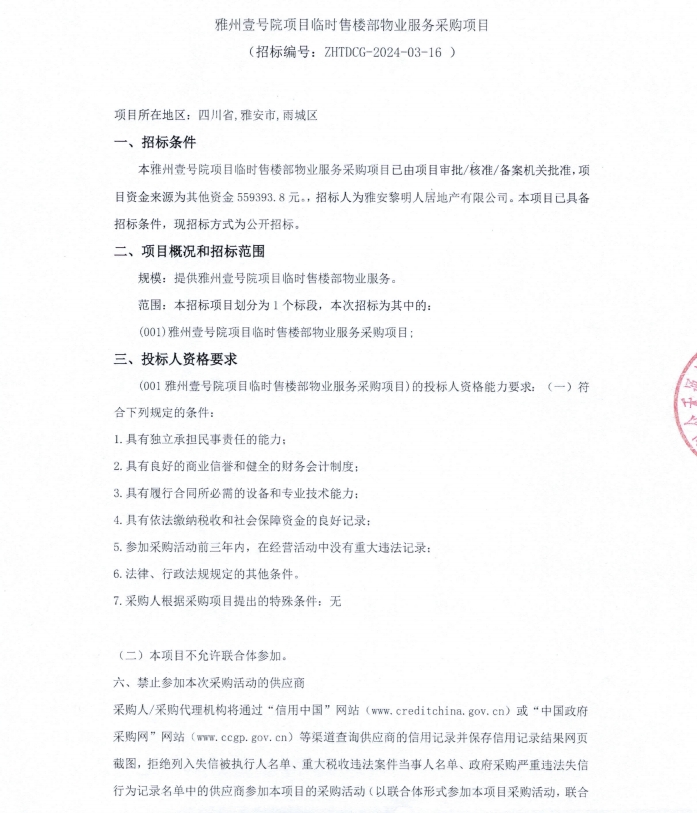 雅州壹號(hào)院項(xiàng)目臨時(shí)售樓部物業(yè)服務(wù)采購(gòu)項(xiàng)目公告