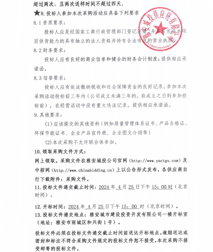 采購文件(2024年3月至2025年2月雅安城投供應(yīng)鏈有限公司年度砂、石材料采購(二次)