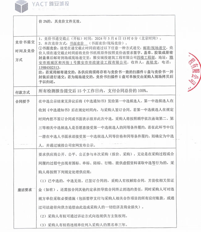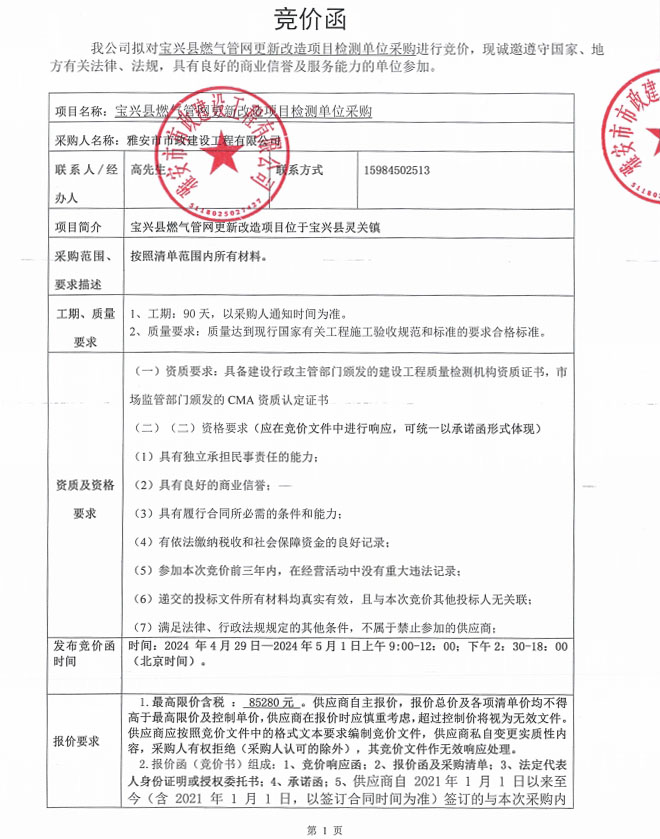寶興縣燃氣管網(wǎng)更新改造項目檢測單位采購競價公告