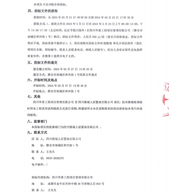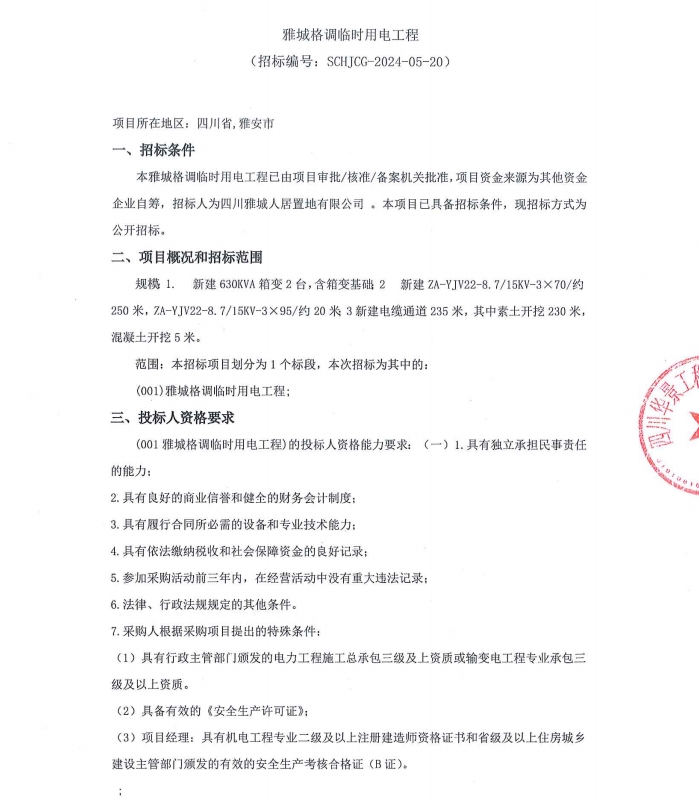 雅城格調(diào)臨時用電工程公告