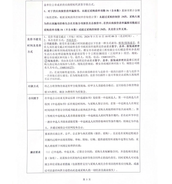 石棉縣草科鄉(xiāng)農(nóng)村生活污水處理設(shè)施恢復(fù)重建項(xiàng)目等十個(gè)工程打捆項(xiàng)目(王崗坪鄉(xiāng))道路井蓋競(jìng)價(jià)公告