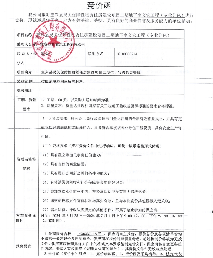 寶興縣靈關保障性租賃住房建設項目二期地下室交安工程(專業(yè)分包)競價公告