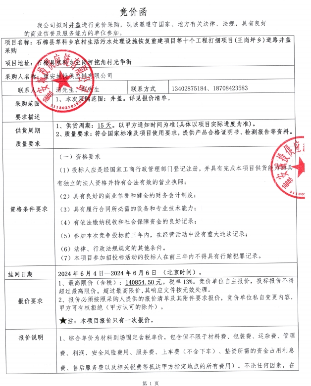 附件1:競價函--石棉縣草科鄉(xiāng)農(nóng)村生活污水處理設(shè)施恢復重建項目等十個工程打捆項目(王崗坪鄉(xiāng))道路井蓋采購