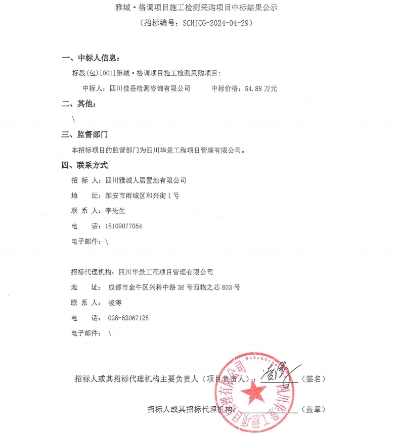雅城·格調(diào)項(xiàng)目施工檢測采購項(xiàng)目中標(biāo)結(jié)果公示