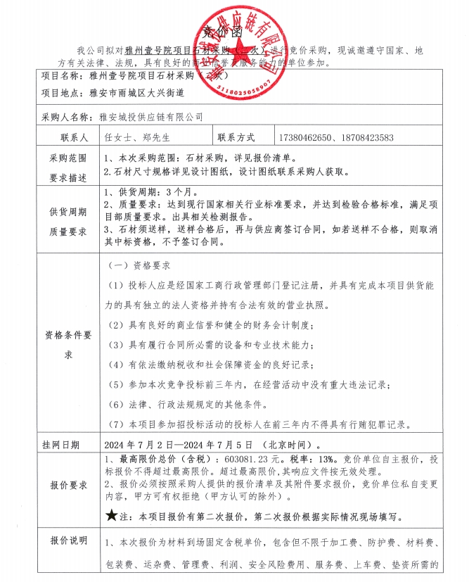 雅州壹號(hào)院項(xiàng)目石材采購(gòu)(二次)競(jìng)價(jià)公告